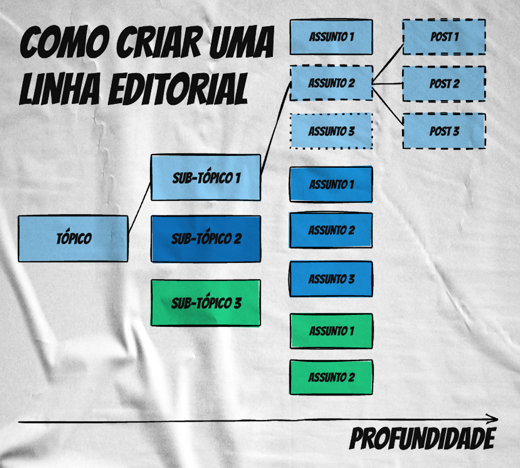 2️⃣ Subtópicos. Pra começar, pense em 3 dimensões que compõe o tópico-âncora.